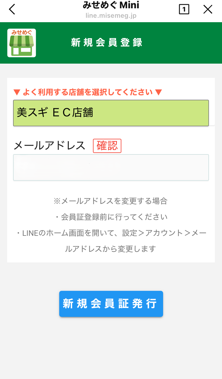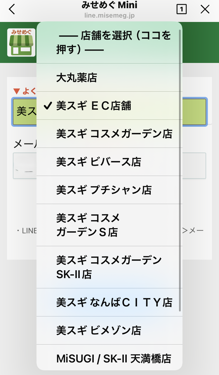 STEP7 「美スギEC店舗」を押して