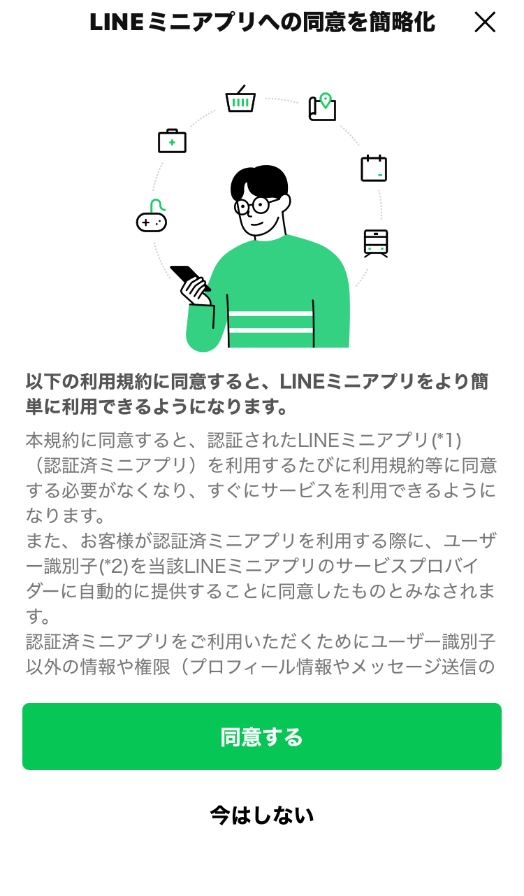 STEP3 LINEミニアプリの同意を押す